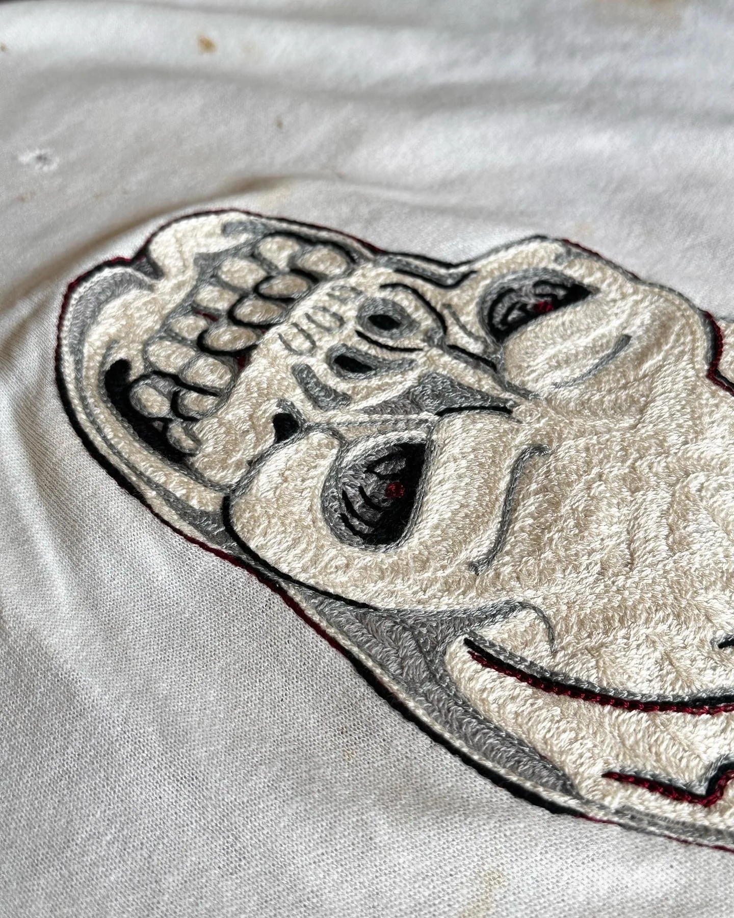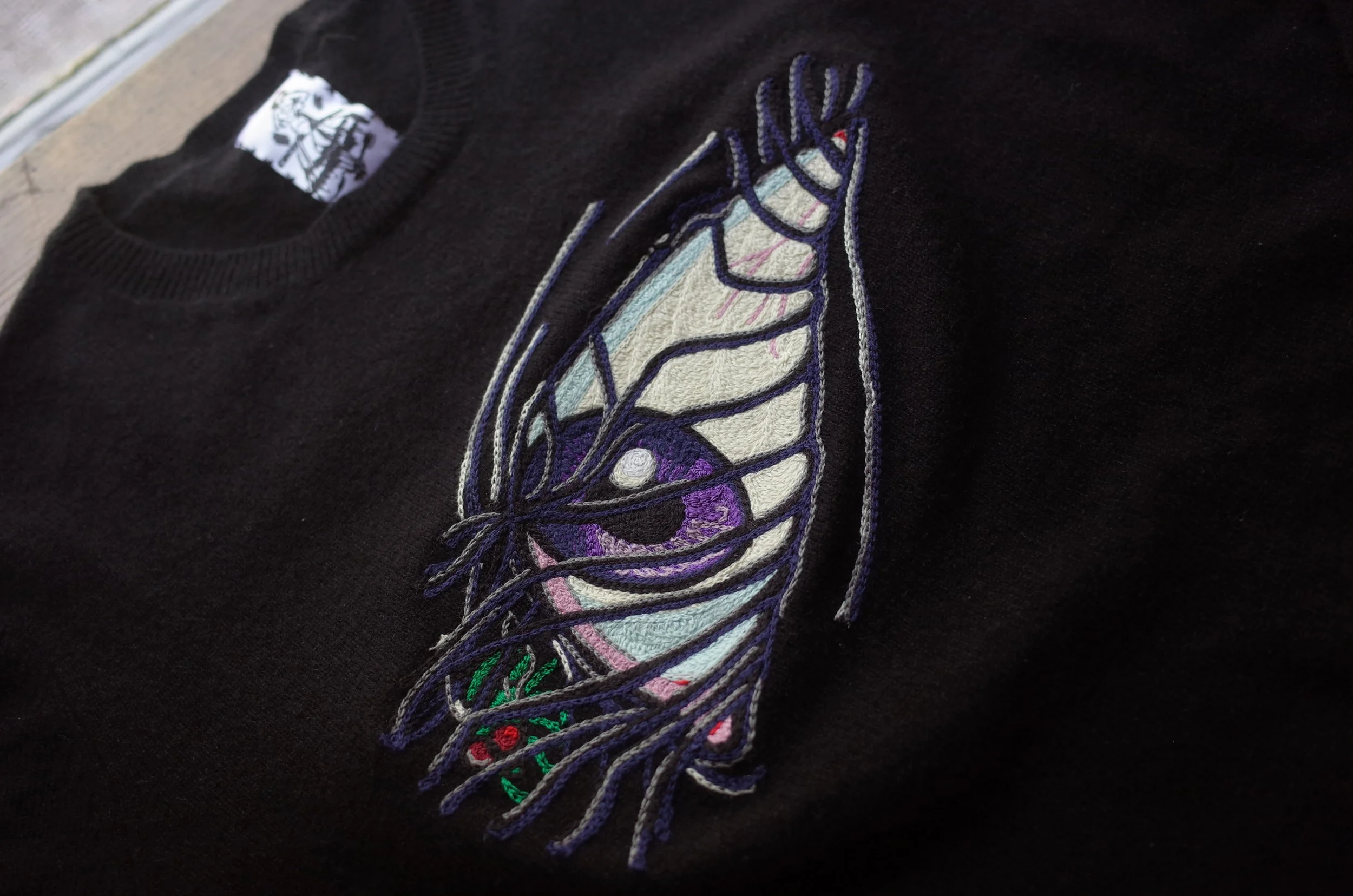 gothic oddities, surrealist tones, Trompe-l'œil, and overall geeky images that wouldn’t be or shouldn’t be chain-stitched.